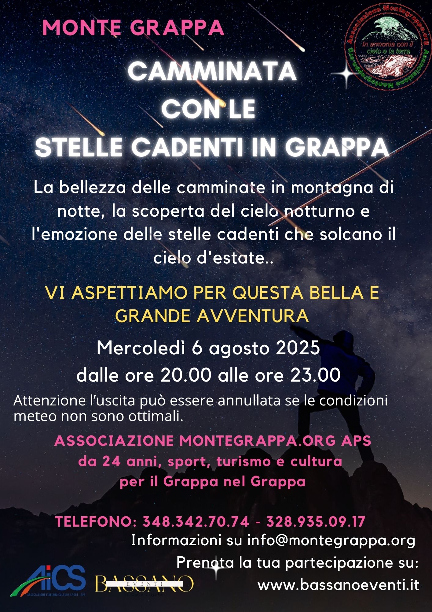 Vi aspettiamo mercoledì 6 agosto 2025 per una grande camminata propedeutica per raggiungere un posto panoramico e ammirare le stelle cadenti dal Massiccio del Grappa! Una passeggiata semplice e piacevole di circa 6 km, immersi nel crepuscolo, ci porterà a vivere questa splendida esperienza. Faremo una sosta in un punto panoramico dove potremo osservare gli sciami meteoritici della stagione. Ricordiamo che i primi 15 giorni di agosto sono davvero speciali per questi eventi, perché avremo la fortuna di vedere diversi sciami accompagnarci: Alfa-Capricornidi, Aquaridi meridionali, Omega-aquaridi meridionali, Alfa-Pesceaustralidi, Pesceaustralidi e le mitiche Perseidi, che come ogni anno in questo periodo raggiungono il loro massimo splendore.